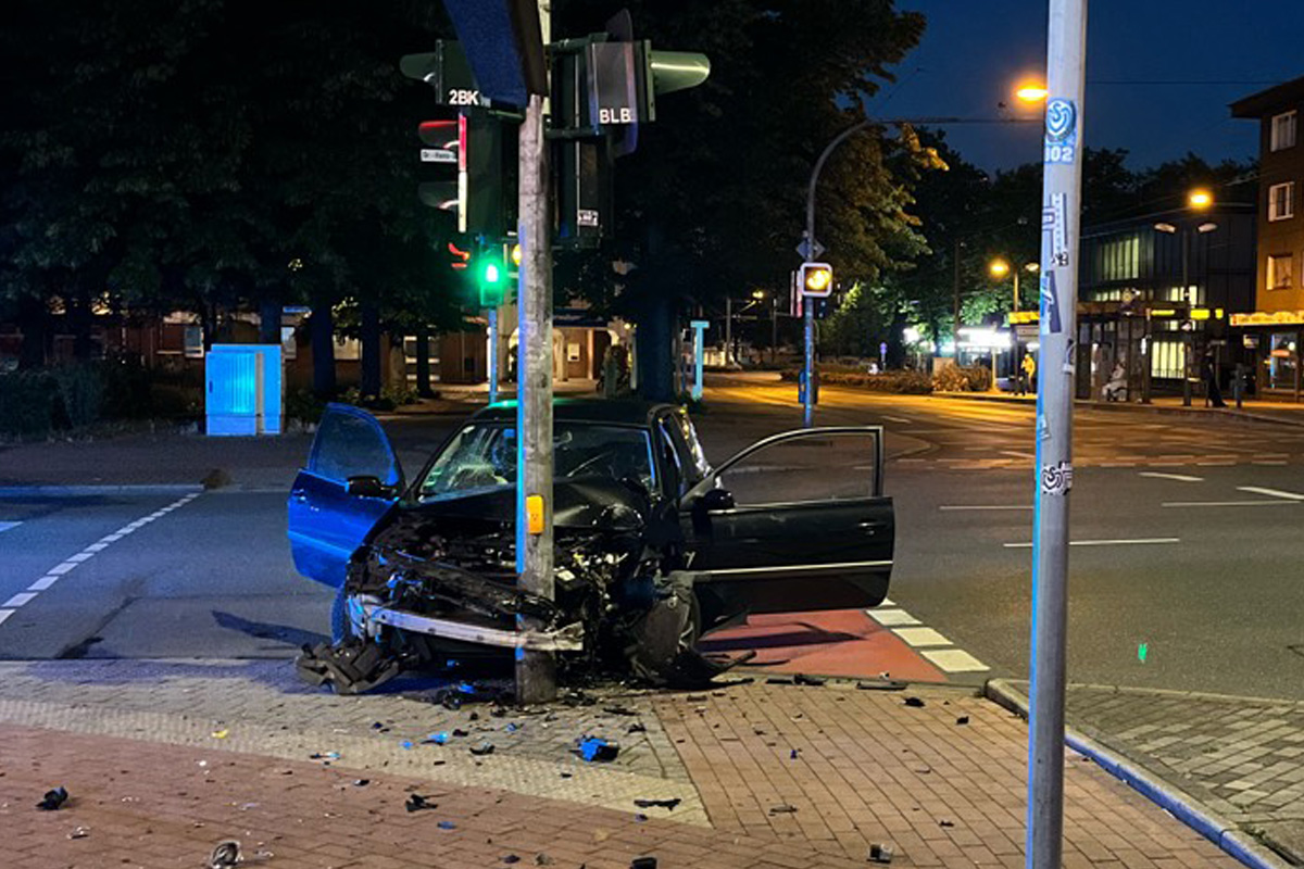 In Duisburg-Marxloh soll es in der Nacht zu einem illegalen Autorennen mit zwei Fahrzeugen gekommen sein. Nach der Kollision mit einem Ampelmast wurden ein Fahrzeugführer und drei weitere Personen festgehalten.