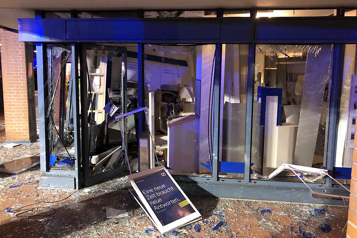 Am Gebäude der Bankfiliale entstand in Dülmen erheblicher Gebäudeschaden (Bildquelle: Polizei Coesfeld)