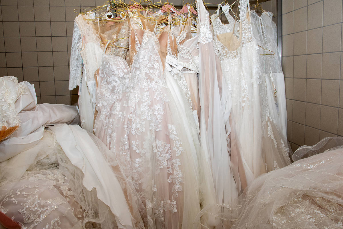 Sichergestellte Brautkleider nach Hausdursuchungen in Düsseldorf (Bildquelle: Polizei Mettmann)