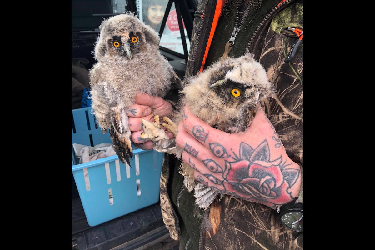 Aus dem Nest gefallene Eulenküken wieder vereint (Bildquelle: Polizeidirektion Landau)