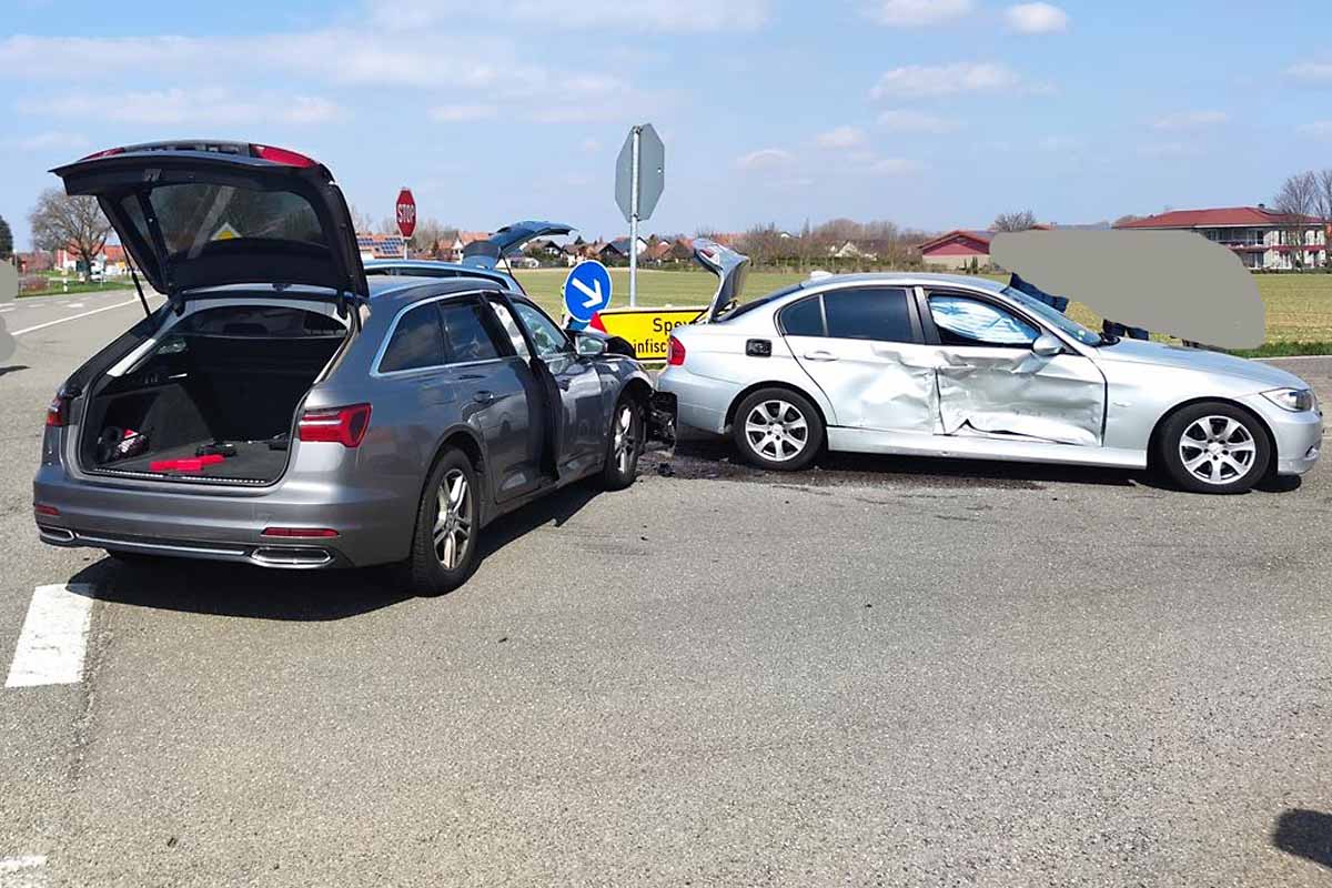 Im Kreuzungsbereich kam es zum Zusammenstoß der beiden Fahrzeuge. Die Audifahrerin wurde dabei leicht verletzt und mit dem Rettungswagen in ein nahegelegenes Krankenhaus gebracht.