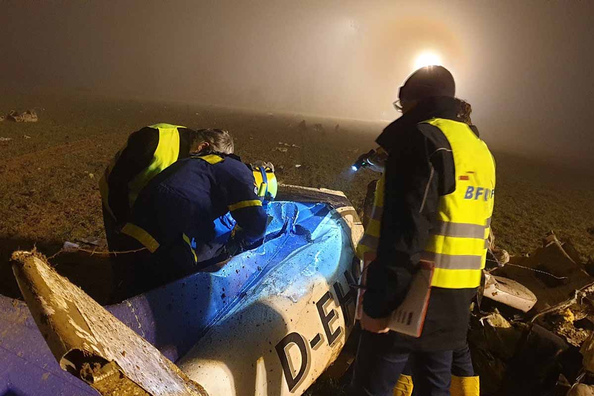 Das Flugzeug kollidierte, während der Pilot aufgrund des dichten Nebels in der Eifel nach Sichtflugregeln flog, mit dem Erdboden.