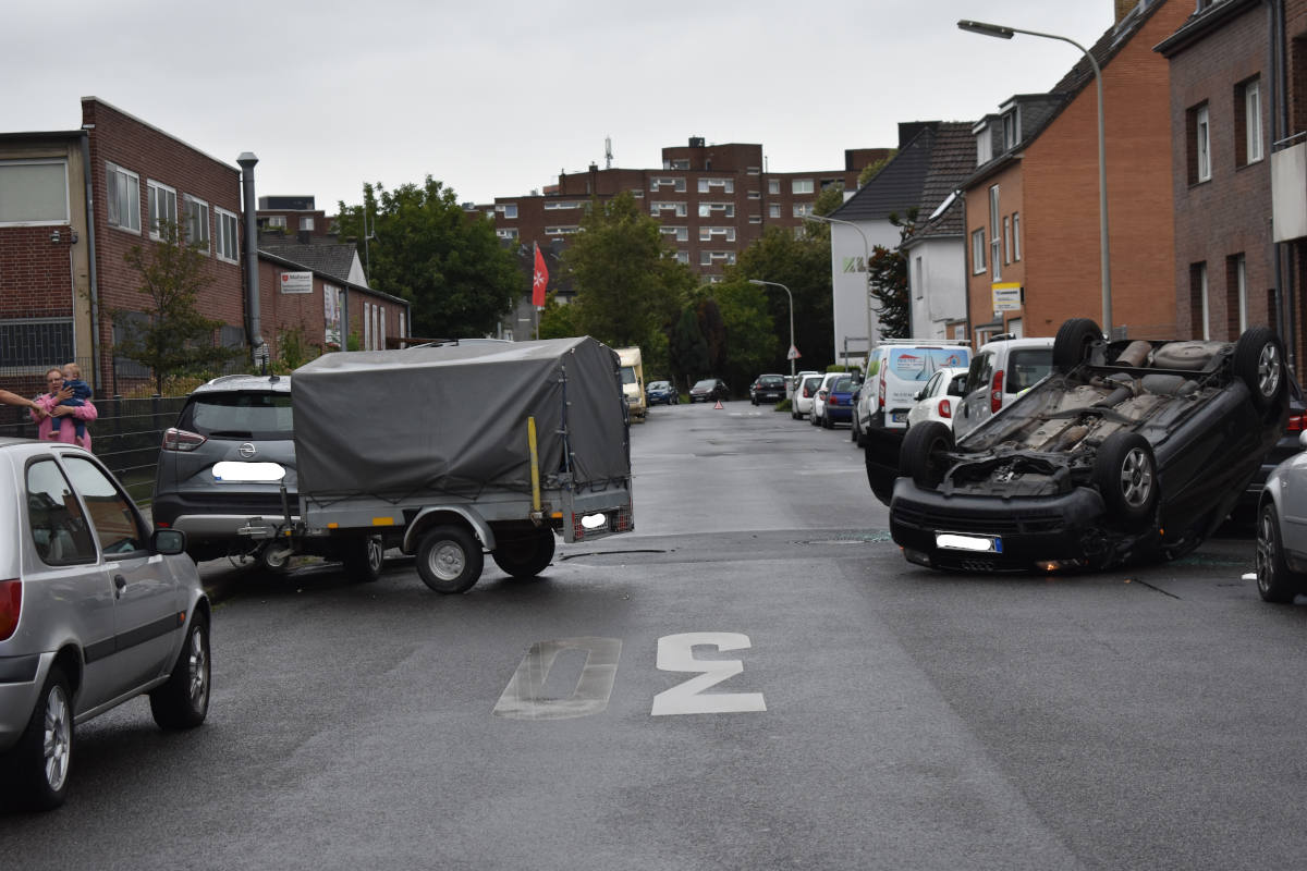 Am Samstag, gegen 16.55 Uhr, befuhr ein 49-jähriger Mann mit seinem PKW Audi die Ückelhofer Straße in Richtung Weichselstraße in Mönchengladbach. Plötzlich verlor er die Kontrolle über sein Fahrzeug und stieß gegen zwei am Fahrbahnrand geparkte PKW. Anschließend überschlug er sich und blieb auf dem Dach liegen.