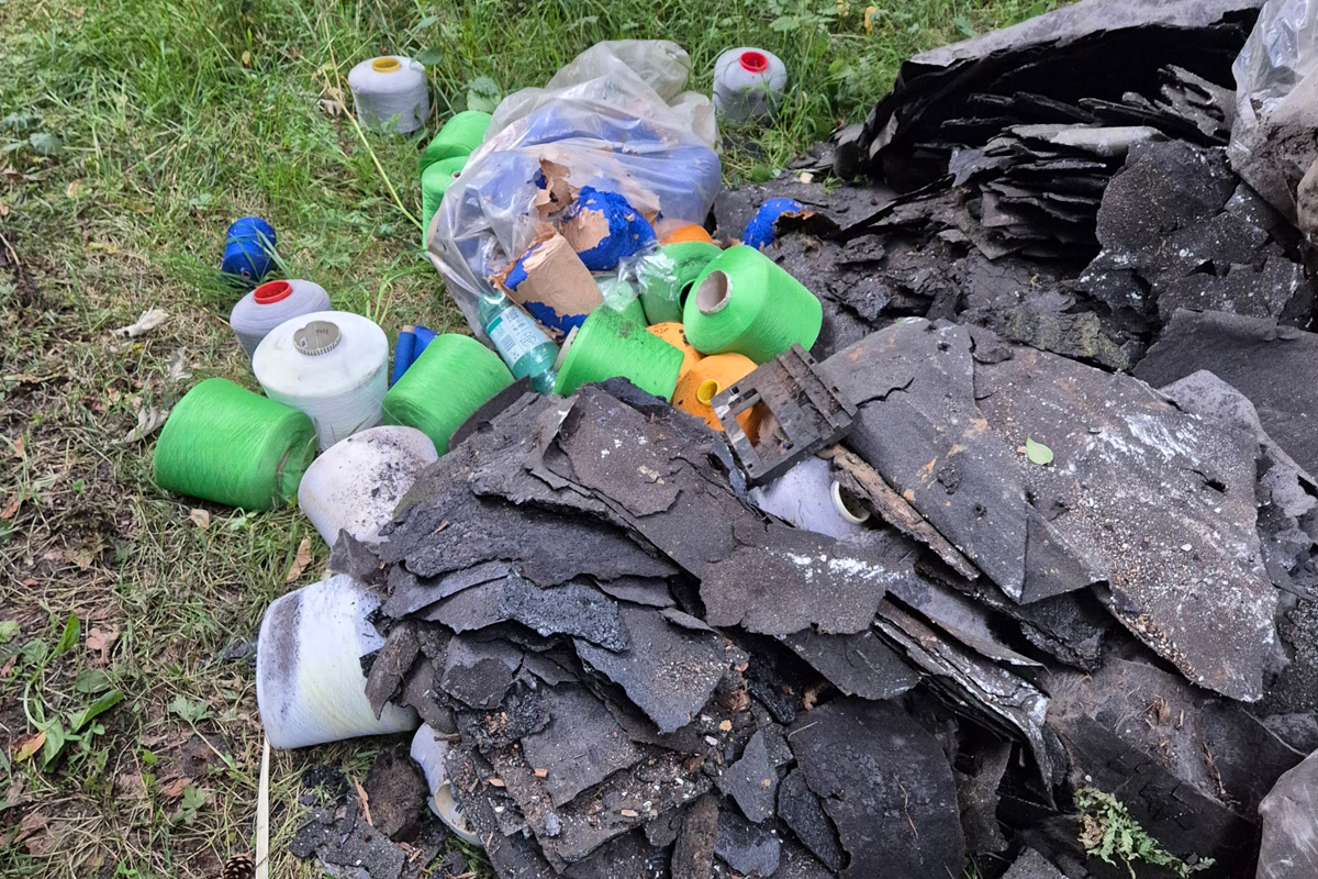 Dachpappe und industrielles Garn wurden illegal entsorgt. (Bildquelle: Polizeiinspektion Emsland/Grafschaft Bentheim)