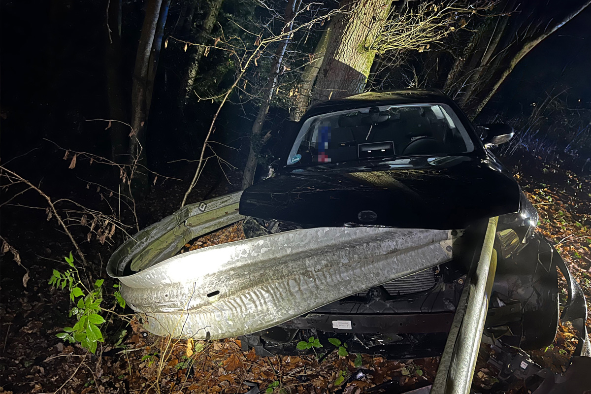 Das Auto prallte in eine Leitplanke beim Ausweichmanöver. (Bildquelle: Kreispolizeibehörde Oberbergischer Kreis)