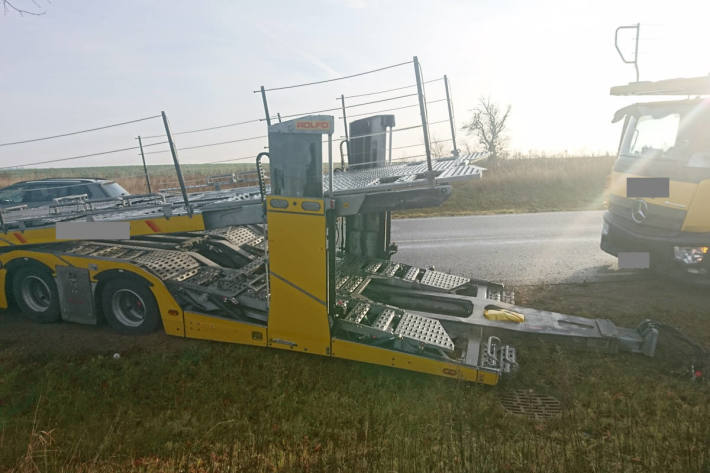 Bei näherer Betrachtung stellte sich heraus, dass eine mit mehreren Bolzen verschraubte Kupplung an der Deichsel des Anhängers komplett abgerissen war. Bei dem Gespann hatte sich somit der hintere Teil des Aufliegers abgelöst und selbstständig gemacht. Dadurch blockierten die Bremsen aufgrund des Druckluftverlustes und der Anhänger rutschte in den Straßengraben. Wäre er stattdessen in den Gegenverkehr gerollt, hätte dies gravierende Folgen haben können.