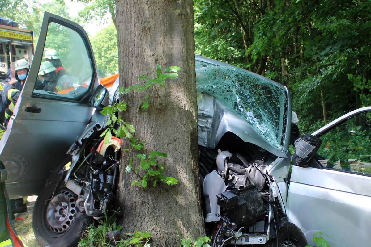 Nach bisherigen Ermittlungen befuhr gestern diese die genannte Kreisstraße in einem VW-Bus von der Osnabrücker Straße kommend in Richtung Fabbenstedt, als das Auto auf gerade Strecke kurz hinter der Einmündung "Weißdornstraße" aus bisher unbekannter Ursache nach links von der Fahrbahn abkam und frontal mit einem Straßenbaum kollidierte. Dabei zog sich die Frau schwere Verletzungen zu.