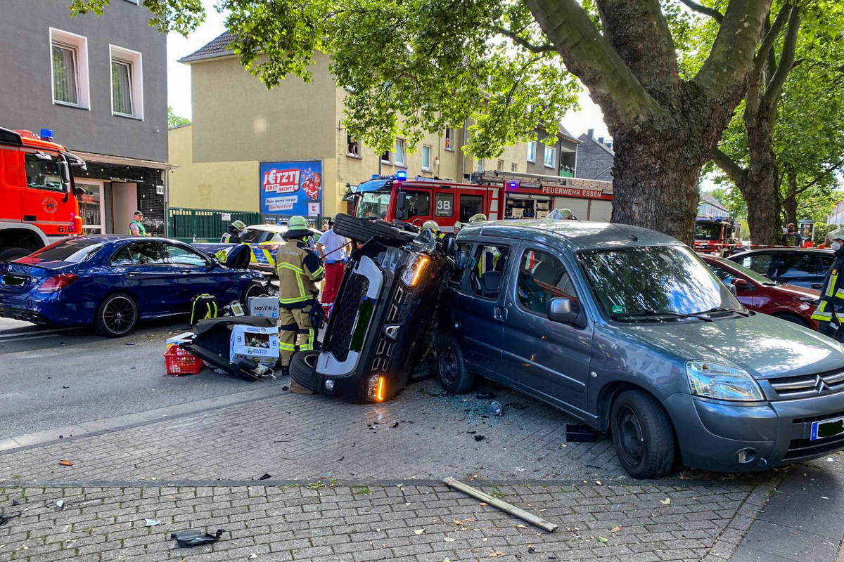 Fluchtfahrzeug prallt in unbeteiligten PKW (Bildquelle: Feuerwehr Essen)