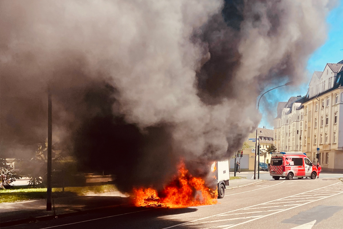In der Franziskanerstraße geriet der Transporter in Vollbrand. (Bildquelle: Feuerwehr Essen)