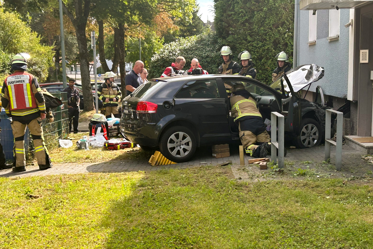 Am Dienstagnachmittag (26.08.2025) prallte in Essen-Heisingen eine ältere Frau mit ihrem Kleinwagen gegen eine Hauswand. Sie war im Fahrzeug eingeschlossen und musste von der Feuerwehr mit hydraulischem Gerät befreit werden. Die Fahrerin kam ins Krankenhaus.