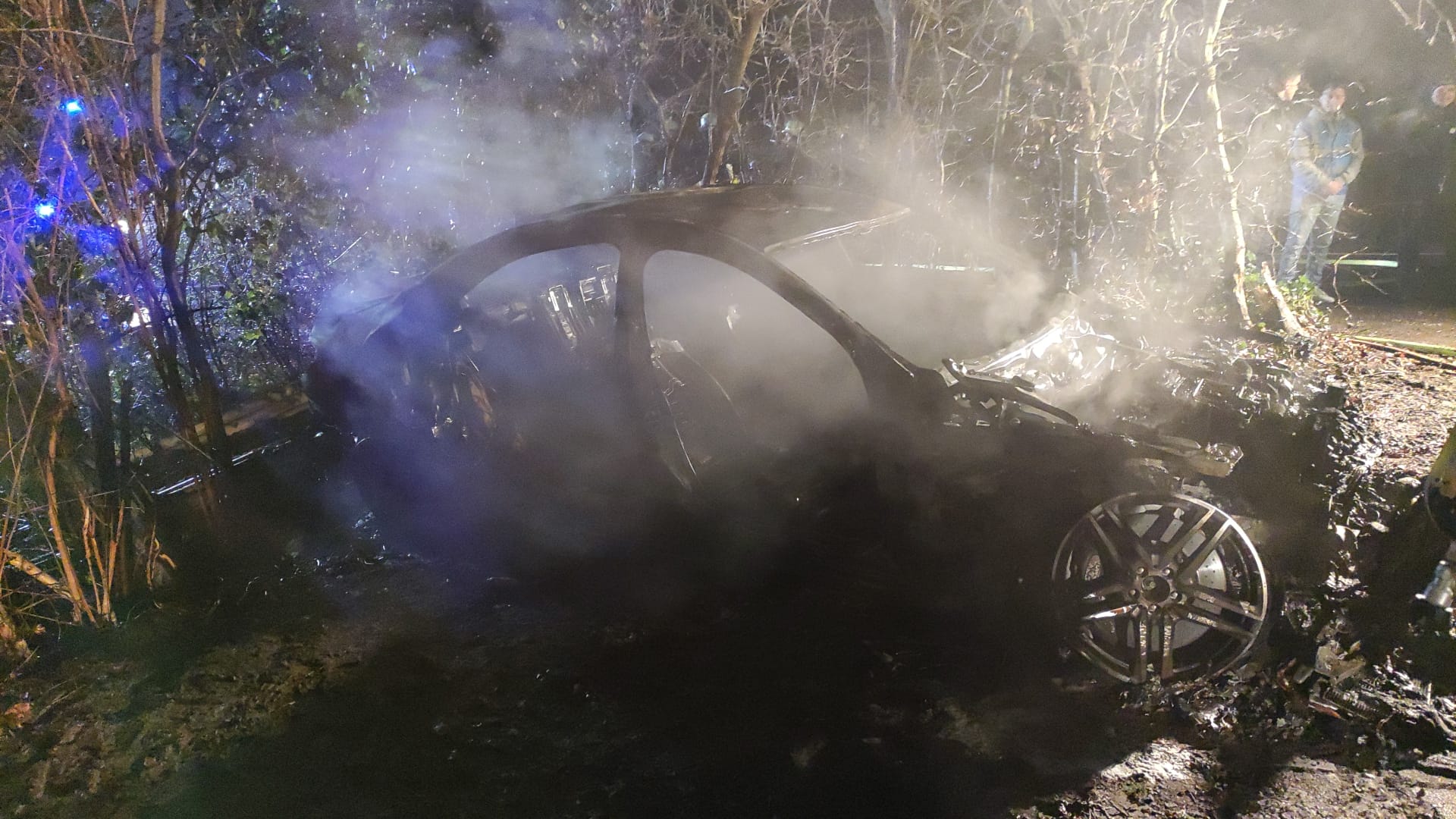 Die ersten Einsatzkräfte erkannten einen PKW, der bereits in Vollbrand stand. Augenscheinlich hatte das Fahrzeug einen Baum touchiert und war dann erst einige Meter weiter in einem Waldstück zum Stehen gekommen. Umgehend wurden weitere Kräfte nachalarmiert und die Umgebung mit einer Wärmebildkamera kontrolliert. Es konnten keine Personen aufgefunden werden. Auch eine zeitgleich eingeleitete Suche mit einem Hubschrauber der Polizei blieb erfolglos, sodass davon ausgegangen werden muss, dass der oder die Fahrer*innen flüchtig sind. Der Brand wurde mit einem handgeführten Strahlrohr gelöscht, die Löschmaßnahmen nahmen jedoch einige Zeit in Anspruch.