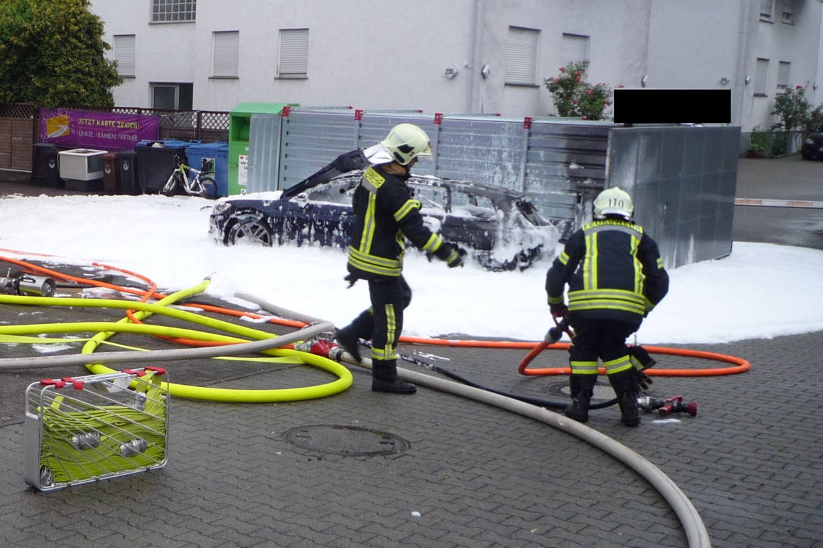 Um den entsprechenden Zog zu erzielen wurde an den Gartenschlauch der Staubsauger gehalten. Hierbei kam es zu einer Verpuffung, so dass sowohl der Staubsauger, als auch das Fahrzeug in Brand gerieten. Auch ein in unmittelbarer Nähe aufgestellter Metallcontainer erlitt durch die Hitzeentwicklung Schaden. Der 20-jährige Hilfeleistende erlitt bei der Verpuffung eine leichte Handverletzung, die vor Ort medizinisch versorgt werden konnte.