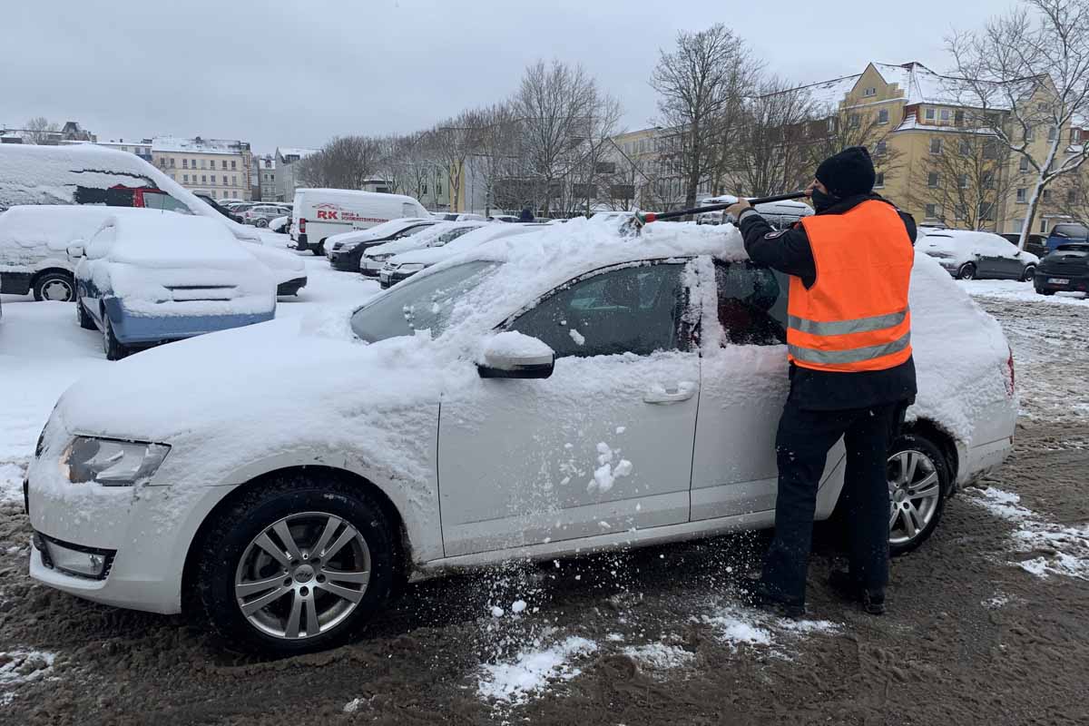 Vor dem Antritt einer Fahrt muss vorhandener Schnee auf dem gesamten Auto entfernt werden. Kennzeichen müssen von Schnee befreit und alle Scheiben eines Fahrzeugs freigekratzt werden. Fahren Sie nicht, wie auch bei unserer Kontrolle heute festgestellt, mit einem kleinen Guckloch in der Frontscheibe. Soviel Zeit muss sein! Prüfen Sie außerdem regelmäßig den Zustand der Scheibenwischer und den Füllstand des Wischwassers