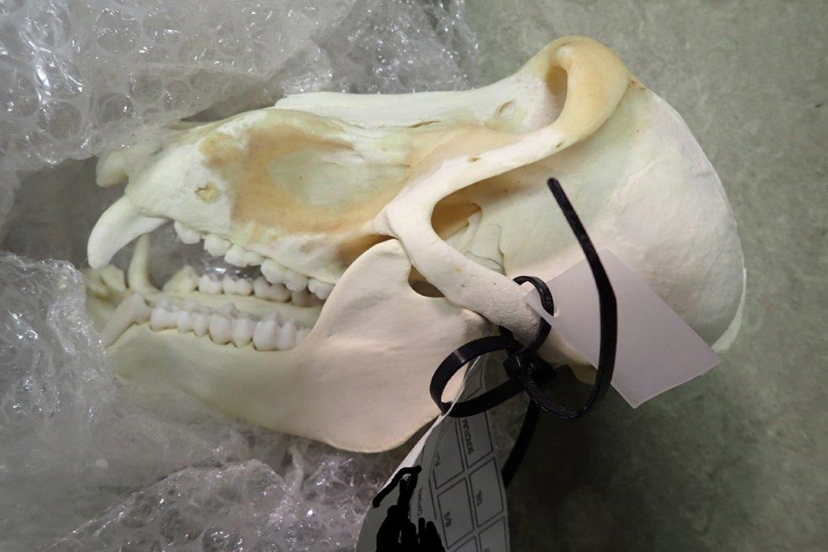Schädel und Fell eines Pavians wurden ebenfalls sichergestellt. (Bildquelle: Hauptzollamt Frankfurt am Main)