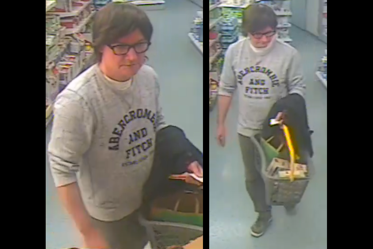 Gesucht wird die unten abgebildete Person, 30 bis 50 Jahre alt, zwischen 160 bis 175 cm gross, normale Statur mit leichtem Bauchansatz, auf dem Bild vermutlich mit einer Perücke mit längeren dunkelbraunen Haaren und einer Brille mit dunkler Fassung. Kleidung: Helles Sweatshirt, dunkle Hose und dunkle Sneaker mit weissem Rand (bzw. Sohle) sowie schwarze Jacke. Die Person hielt sich kurz vor Ladenschluss am Tatort auf und wurde von der Überwachungskamera erfasst.