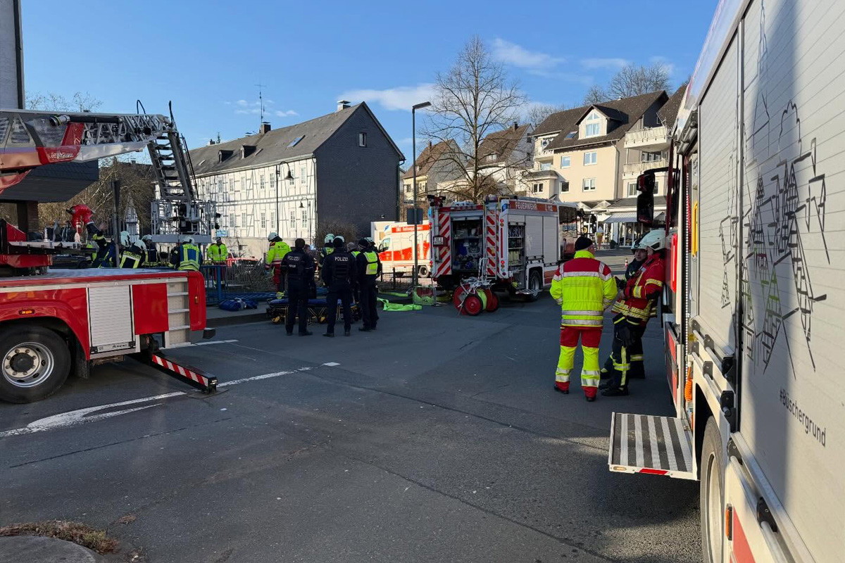 Ein 75-jähriger Autofahrer ist am ersten Weihnachtstag, 25.12.2025, in Freudenberg mit seinem Pkw über ein Brückengeländer in einen Flusslauf gestürzt. Das Fahrzeug fiel mehr als zwei Meter tief. Die Polizei geht von einem medizinischen Notfall als Unfallursache aus.