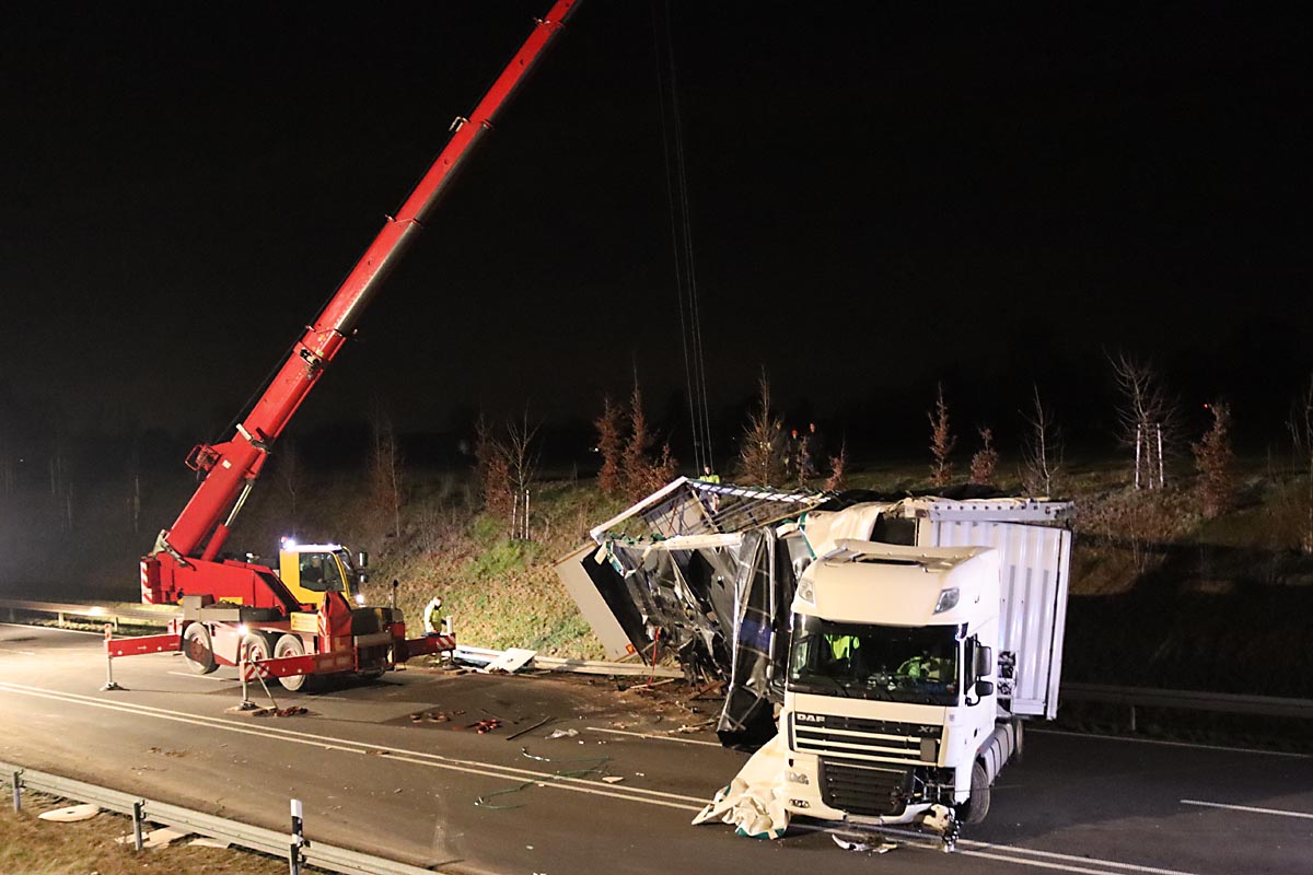Aus bislang ungeklärter Ursache verlor der Fahrer in Höhe der Ortschaft Birgden die Kontrolle über sein Fahrzeug und kippte zur Seite. Dabei wurde der Sattelanhänger schwer beschädigt, der Lkw-Fahrer blieb jedoch glücklicherweise unverletzt.