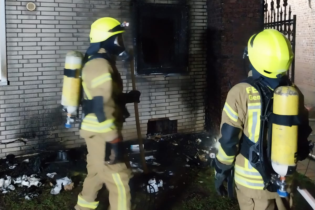 Nach einem Mülltonnenbrand in Gangelt, der auf ein Wohnhaus übergriff, musste eine Frau aus dem zweiten Obergeschoss durch die Feuerwehr gerettet werden. Beide Wohnungen im Gebäude sind unbewohnbar.