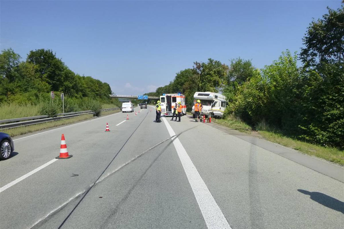 Die Fahrerin und ihr 61jähriger Begleiter kamen mit dem Schrecken davon. Das Wohnmobil dürfte jedoch als wirtschaftlicher Totalschaden einzustufen sein. Weitere Verkehrsteilnehmer waren, trotz des starken Verkehrsaufkommens, nicht betroffen.