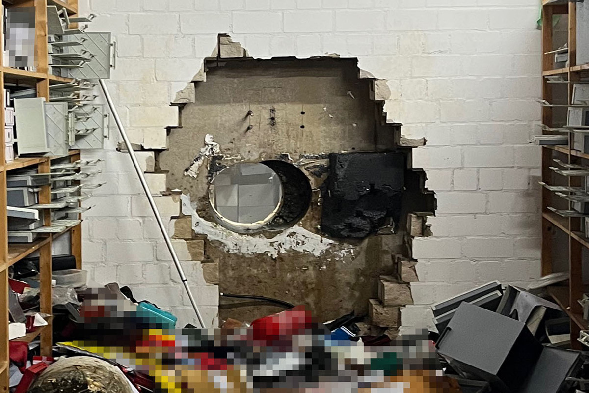 Nach bisherigen Erkenntnissen bohrten sich die Täter mit einem professionellen Großbohrer durch eine massive Wand in den Tresorraum der Filiale. Der Zugang erfolgte mutmaßlich aus einem Büroraum der