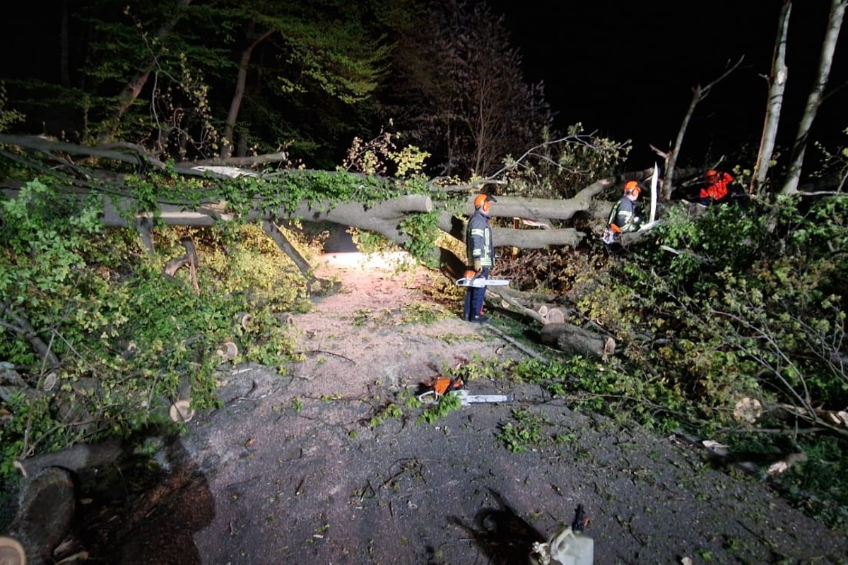 Am Donnerstag, den 21.04.2022 um 21:35 Uhr wurde die Feuerwehr Gevelsberg zur Straße Am Werde gerufen, da dort mehrere umgestürzte Bäume die Fahrbahn blockierten und somit auch der einzig mögliche Rettungsweg zu den dahinter liegenden Häusern versperrt wurde.