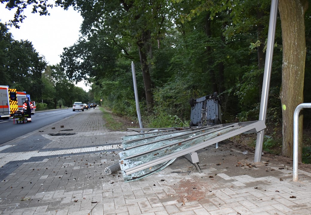 Nach derzeitigem polizeilichen Kenntnisstand befuhr eine 18 Jahre alte Fahrzeugführerin aus Speyer (Rheinland-Pfalz) mit ihrem BMW Mini die Wolfsburger Str. in Richtung K114. Kurz nach der Einmündung des Isenbütteler Weg touchierte sie eine Überquerungshilfe für Fußgänger und verlor die Kontrolle über ihr Fahrzeug. Dabei kam sie nach rechts von der Fahrbahn ab und kollidierte mit einem Bushaltehäuschen. Danach überschlug sich der Mini und blieb auf dem Dach liegend an einem Abhang liegen.