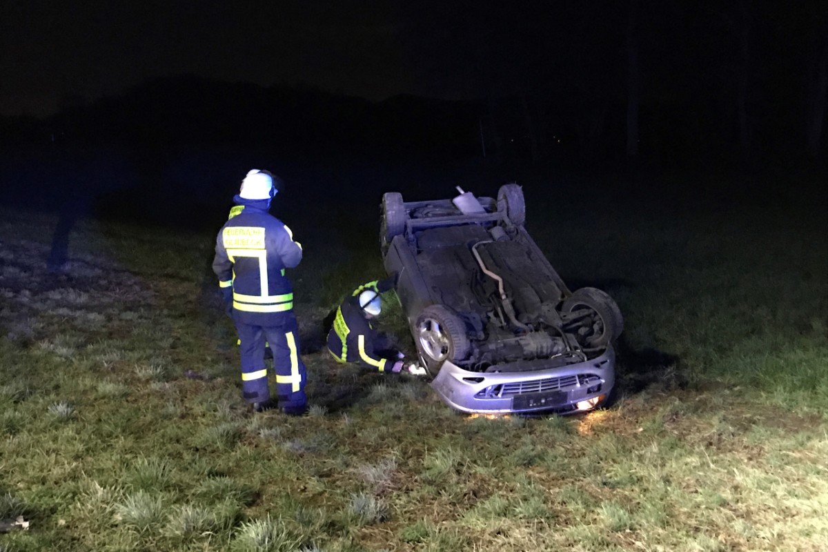 Ein PKW befand sich ca. 20 m entfernt von der Fahrbahn und stand auf den Rädern. Der Fahrer konnte sich eigenständig aus dem verunfallten Fahrzeug befreien. Das zweite Fahrzeug befand sich ca. 40 m von der Fahrbahn entfernt in der angrenzenden Wiese und lag auf dem Dach. Auch hier hatte sich der Fahrer eigenständig befreien können.