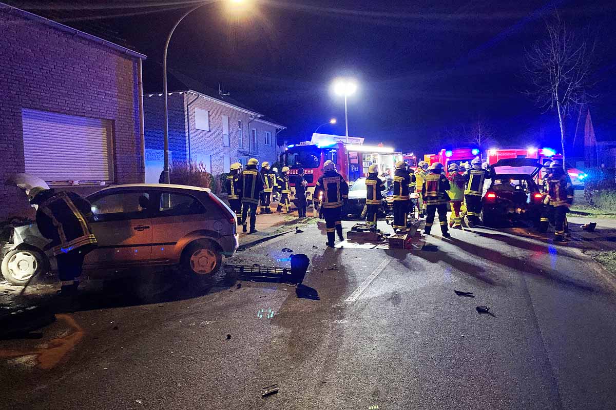 Der Fahrer war in einem VW Lupo unterwegs, sein Fahrzeug prallte gegen drei an der Straße geparkte PKW in Goch (Bildquelle: Freiwillige Feuerwehr der Stadt Goch)