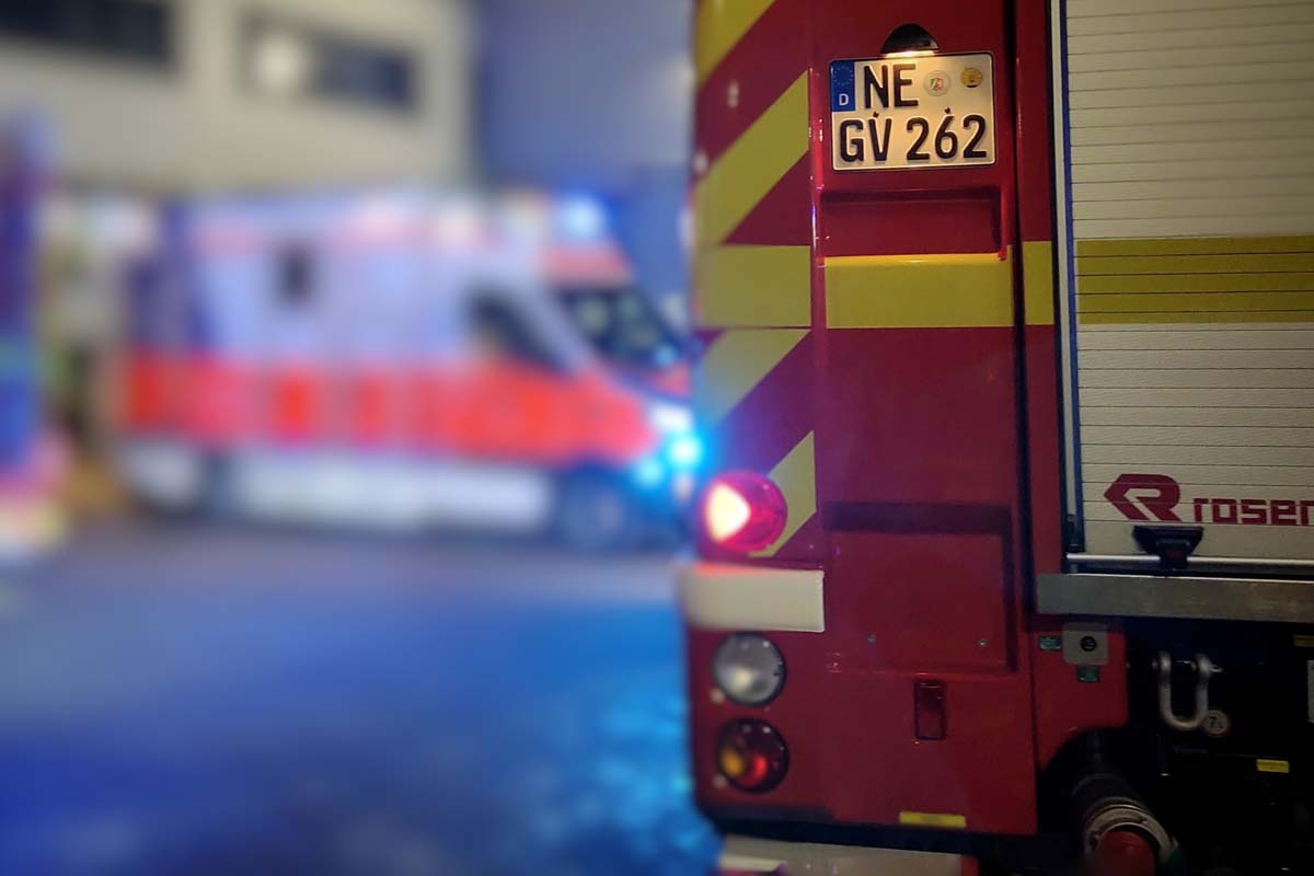 Als der Verletzte aus Grevenbroich transportfähig war, wurde er unter Notarztbegleitung in ein Krankenhaus transportiert (Bildquelle: Feuerwehr Grevenbroich)