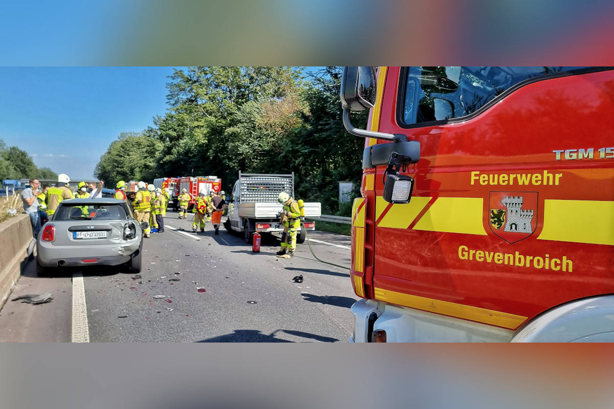 Die alarmierten Einsatzkräfte der Grevenbroicher Feuerwehr fanden die Insassen der Fahrzeuge glücklicherweise weder eingeklemmt noch in ihren Autos eingeschlossen vor. Bis zum Eintreffen des Rettungsdienstes betreuten die Feuerwehrkräfte die leicht- bis mittelschwerverletzten Personen. Parallel stellte die Feuerwehr den Brandschutz sicher und klemmte an den Unfallwagen soweit erforderlich die Batterien ab.