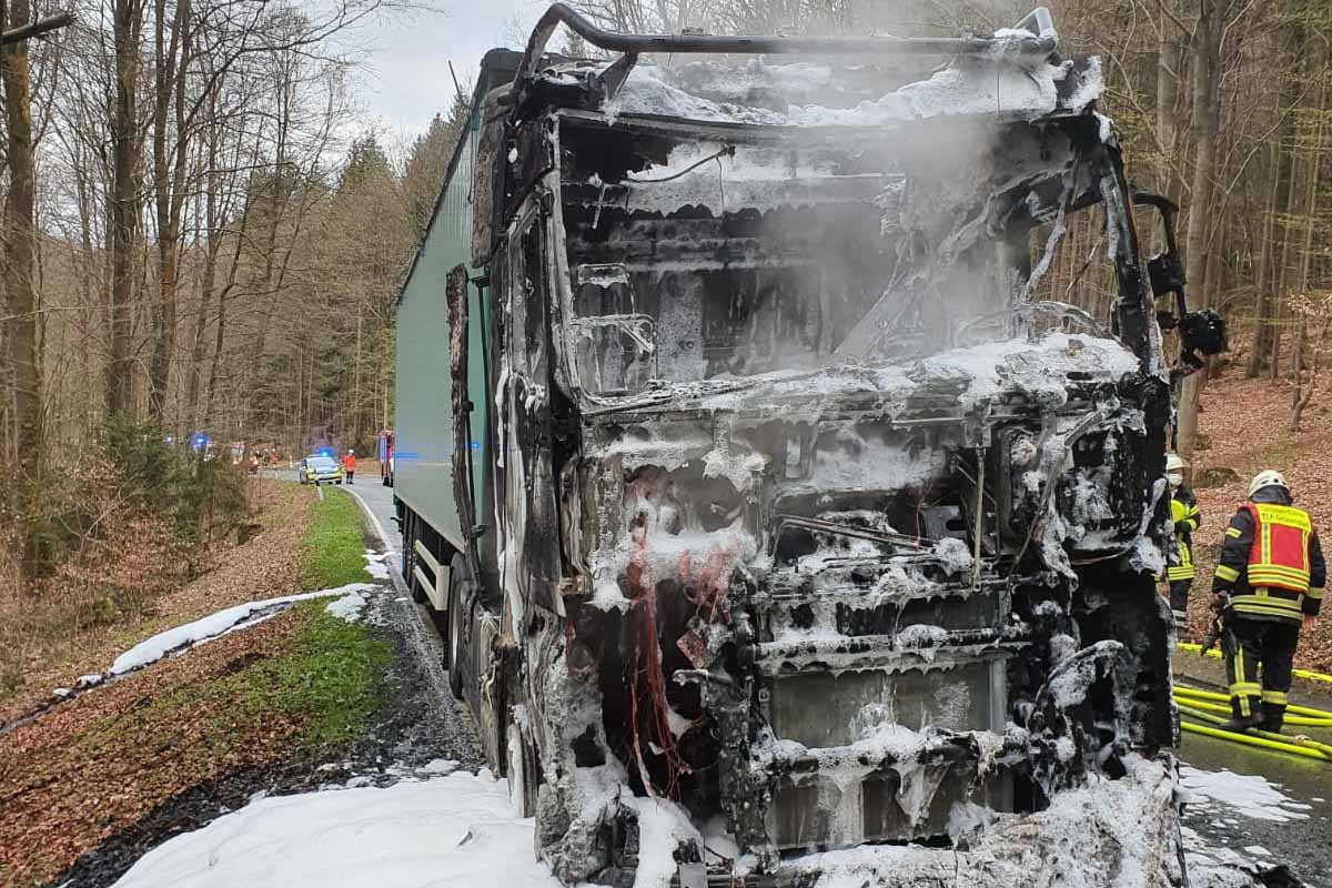 Die Sattelzugmaschine wurde durch den Brand total beschädigt, am gesamten Fahrzeugzug entstand ein Sachschaden von ca. 150.000 Euro.