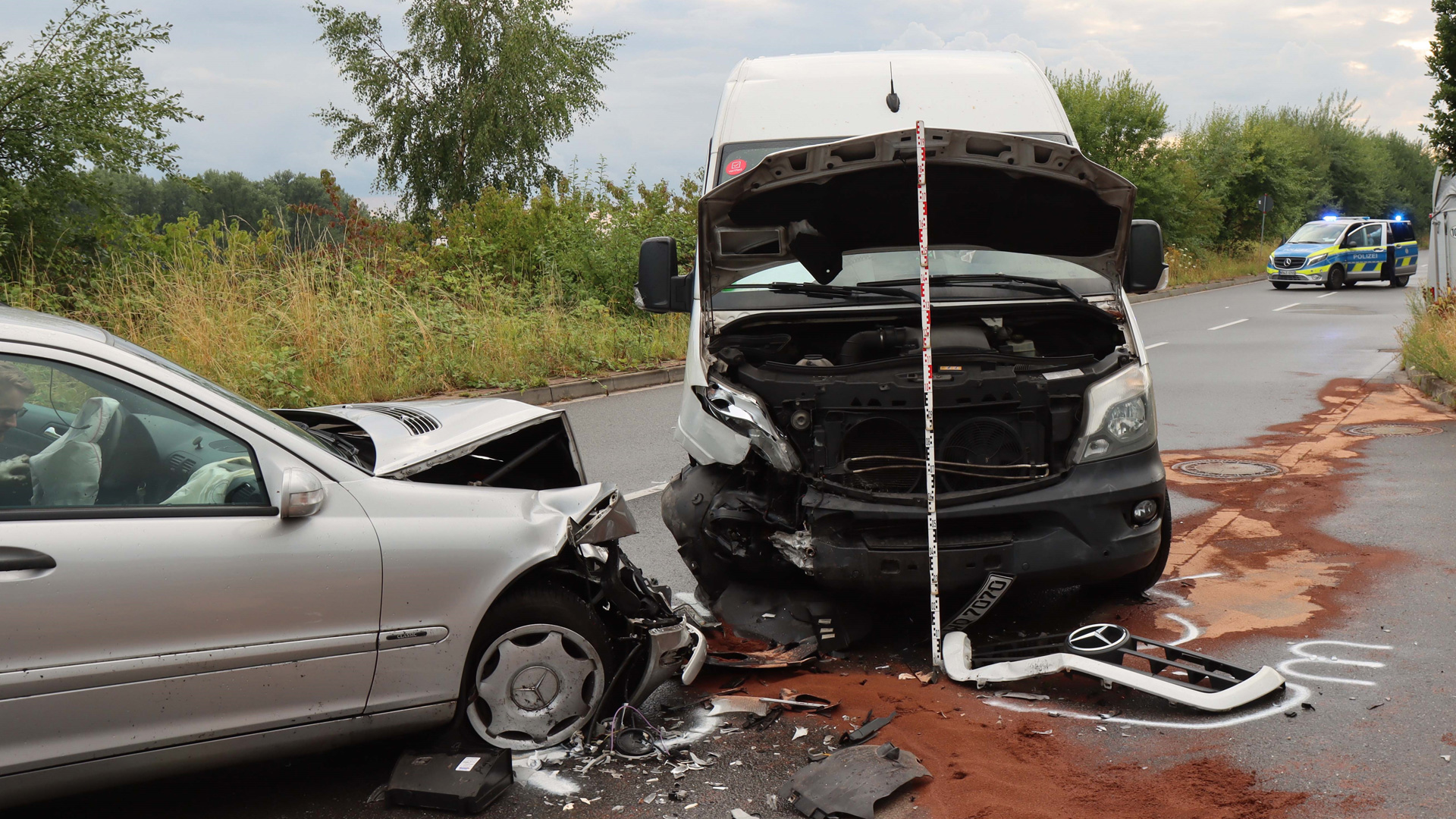 Beim Linksabbiegen auf ein Firmengelände missachtete er die Vorfahrt eines entgegenkommenden 18-jährigen Erkrathers, der mit einem Mercedes C 180 in Richtung Ellscheider Straße unterwegs war.