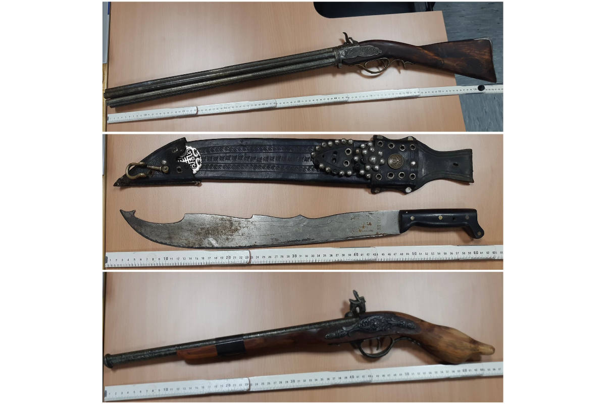 Zwecks Identitätsfeststellung begleitete der Hagener die Beamten zur Bundespolizeiwache. Dabei konnte festgestellt werden, dass es sich bei den Waffen um reine Dekorationswaffen handelte. Eine sogenannte Dekorationswaffe ist eine schussunfähige Waffe, die jedoch täuschend echt aussieht. Bei der Steinschosspistole und der Steinschossflinte handelte es sich um Anscheinswaffen, die im öffentlichen Raum nicht getragen werden dürfen. Die Waffen wurden sichergestellt und können vom Eigentümer verpackt wieder abgeholt werden.