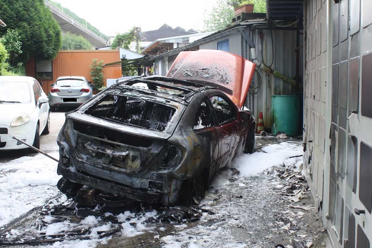 Nur wenige Minuten später bemerkte er pötzlich eine deutliche Rauchentwicklung am Fahrzeug. Sofort selbst eingeleitete Löschversuche mit einem Gartenschlauch schlugen fehl. Die alarmierte Feuerwehr konnte den Mercedes löschen. Dieser brannte vollständig aus.