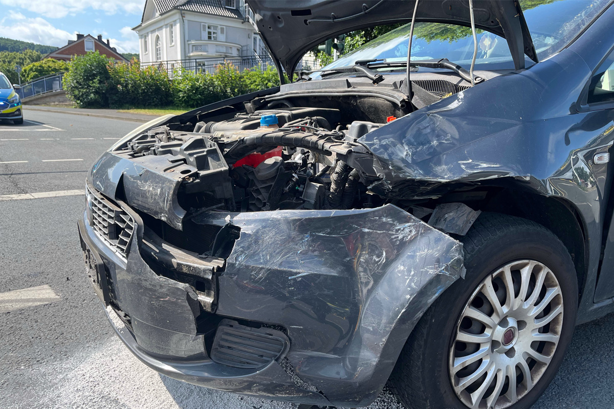 Sie setzte ihre Fahrt nach kurzem Halten an der Ampel, die sich auf Höhe der Einmündung der Unteren Lindenstraße befindet, fort. In dem Einmündungsbereich kollidierte sie mit dem VW T-Roc einer 27-Jährigen, die zu diesem Zeitpunkt von der Weststraße nach links auf die Untere Lindenstraße abbiegen wollte.