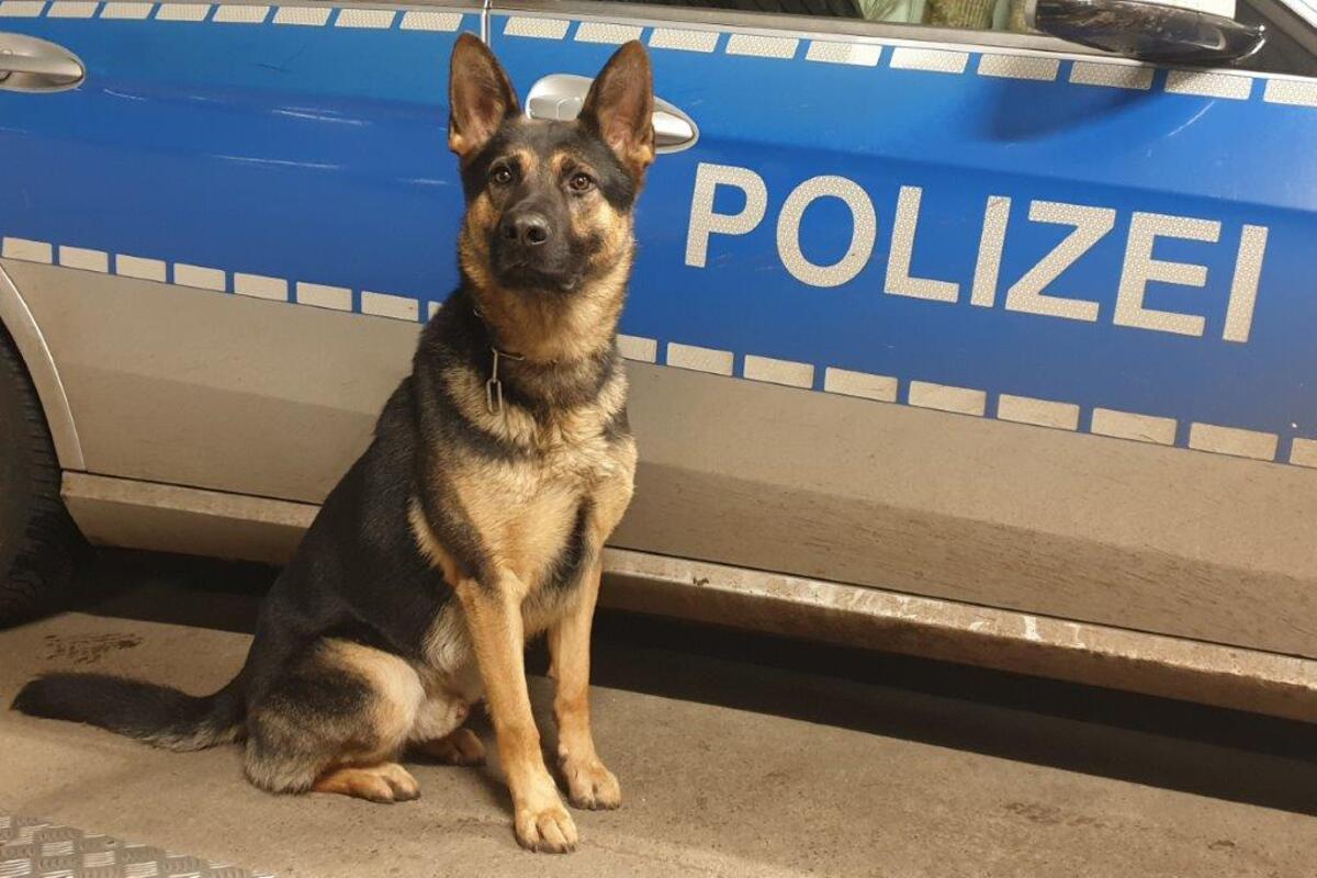 Nachdem der Diensthundeführer den Einsatz des Hundes angedroht und der Schäferhund "Whisper" lautstark gebellt hatte, kamen zwei Tatverdächtige freiwillig aus dem Haus und stellten sich.