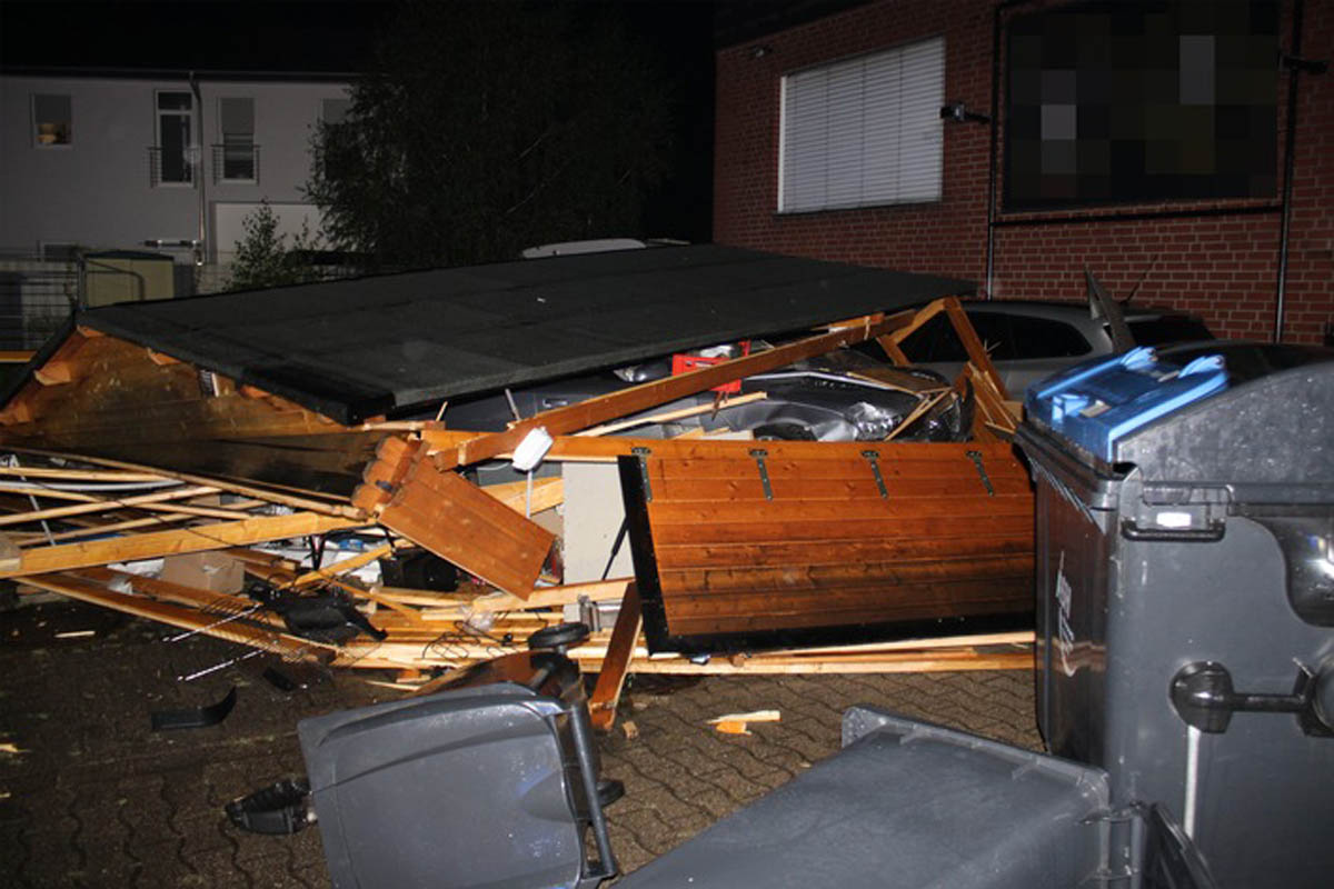 Ein Einbruch in eine Autowerkstatt und der anschließende Diebstahl eines Audis endete am Mittwoch, 18. August, für die beiden Tatverdächtigen unter einer eingestürzten Holzhütte an der Schieferstraße.