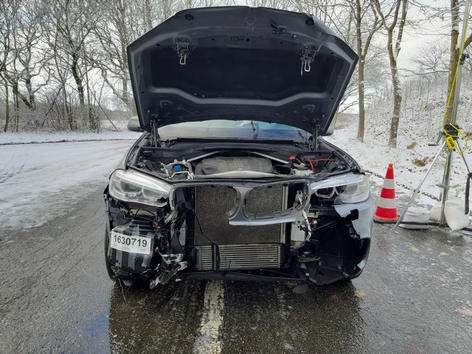 Heute Nachmittag gegen 13.00 Uhr kontrollierten Bundespolizisten einen aus Dänemark kommenden BMW auf dem Parkplatz Handewitter Forst. Die Beamten staunten nicht schlecht, dass der gesamte Frontbereich fehlte.