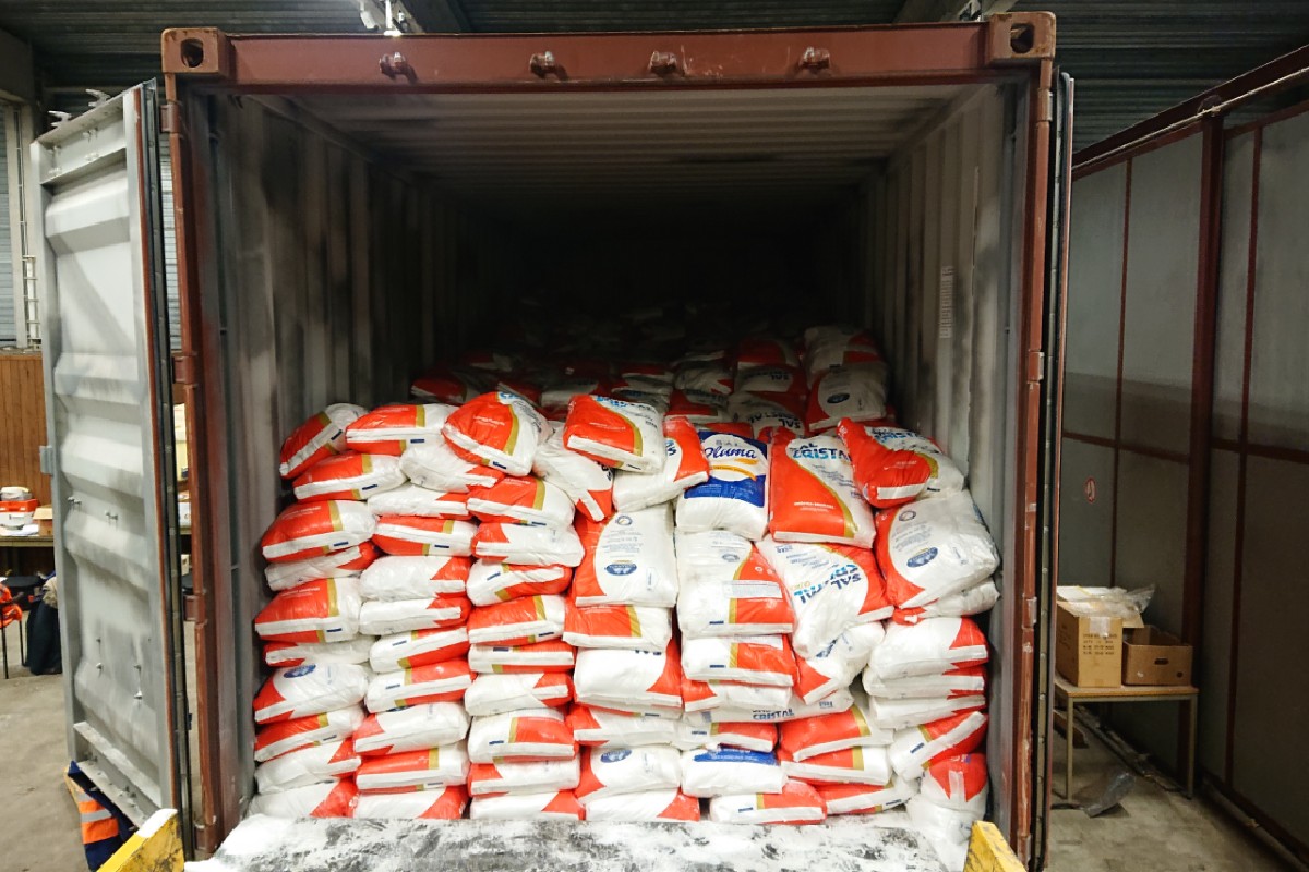 Unter dem Salz wurde das Kokain gefunden. (Bildquelle: Zollfahndungsamt Hannover)