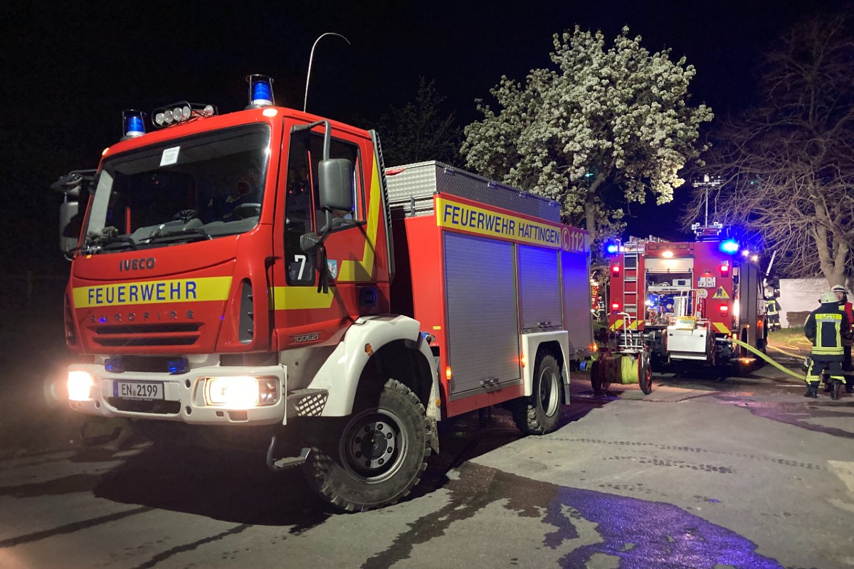 Vor Ort brannte ein Kleintransporter in voller Ausdehnung in einer Fertiggarage. Diese befand sich zum Glück nicht direkt neben dem Wohnhaus.