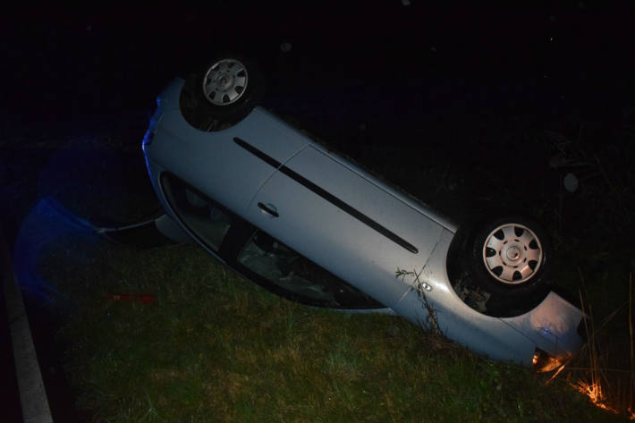 Vermutlich aufgrund nicht angepasster Geschwindigkeit kam am gestrigen Abend gegen 22.45 Uhr ein 18-jähriger Fahrzeugführer aus Bad Eilsen beim Durchfahren einer Rechtskurve zwischen Buchholz und Heeßen auf der regennassen Fahrbahn mit seinem PKW nach links von der Straße ab. Dort kollidierte das Fahrzeug mit einem Verkehrszeichen und blieb auf dem Dach liegen.