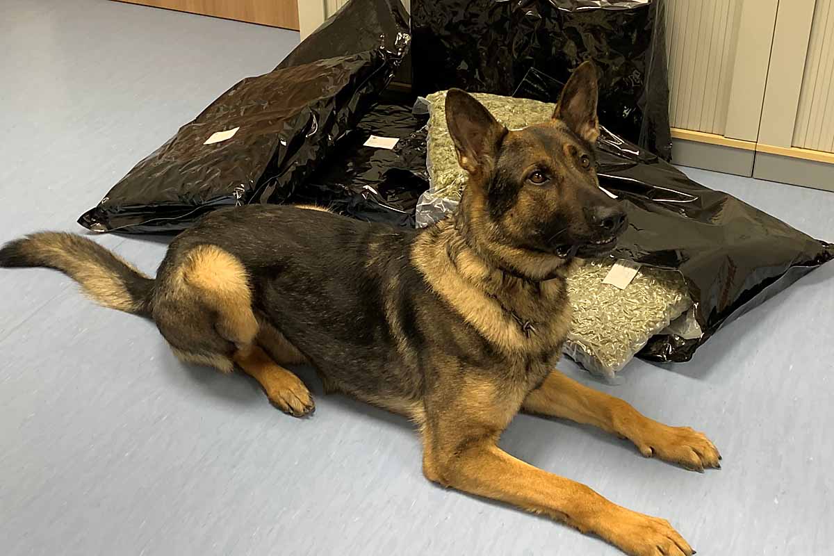 "Nachdem Luc beim Beschnuppern des Gepäckstücks sein typisches Anzeigeverhalten signalisierte, wussten wir schon Bescheid," so der Einsatzleiter der Maßnahme, die bereits Ende Februar durchgeführt wurde.