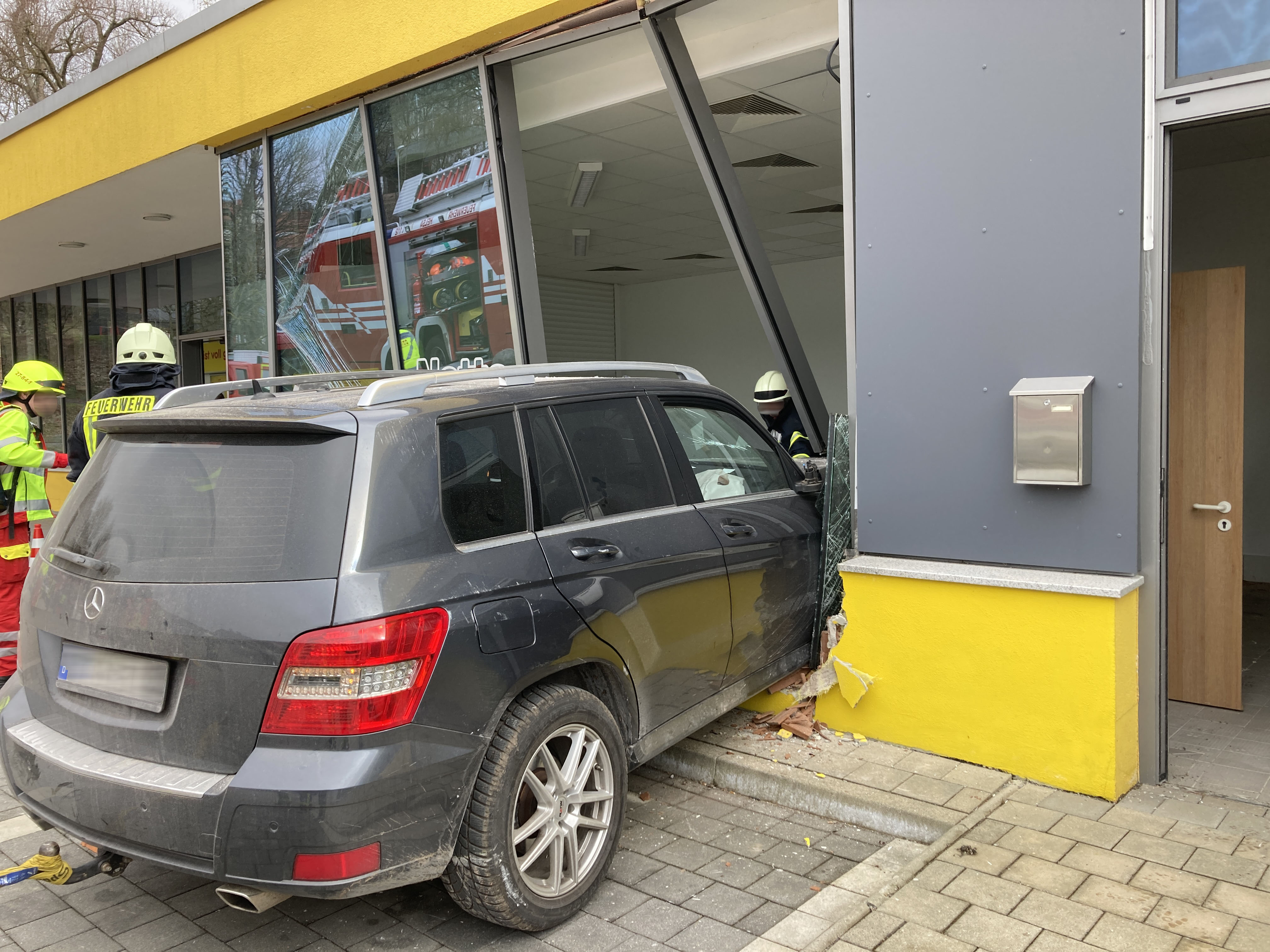 Der 88-Jährige verletzte sich glücklicherweise nur leicht und musste nicht in ein Krankenhaus gebracht werden. Die von Zeugen alarmierte Feuerwehr hatte den Wagen wieder aus dem Geschäft herausgezogen und den Fahrer so anschließend befreien können. Wie die am Unfallort eingesetzte Streife des Polizeireviers Ost berichtet, ereignete sich der Unfall gegen 11:20 Uhr auf dem Gelände eines Discounters in der Berliner Straße. Den ersten Ermittlungen zufolge war der 88-Jährige offenbar beim Einparken aufgrund eines Fahrfehlers vorwärts in die Schaufensterscheibe des leerstehenden Geschäfts gefahren. Dadurch war ein erheblicher Schaden an Gebäude und auch am Pkw entstanden. Die Schadenshöhe beläuft sich nach ersten vorsichtigen Schätzungen auf 100.000 Euro. Das Auto musste abgeschleppt werden.