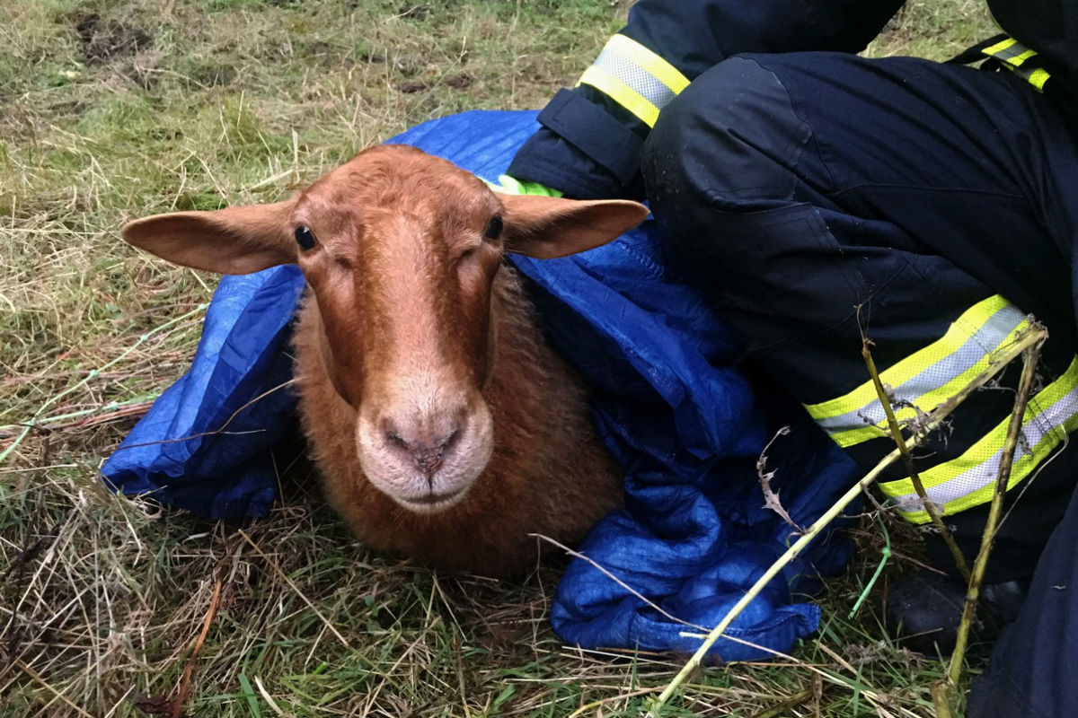 Zunächst hatte sich ein Schaf im Weidezaun verfangen und riss dabei den Zaun teilweise um. Da sich das Tier nicht selbst befreien konnte und ständig Stromschläge vom installierten Weidezaun bekam, griffen beherzte Passanten ein und retten das Tier später mit Beteiligung der Feuerwehr aus dem Zaun. Das Tier wurde behutsam aus der Zwangslage befreit. Mit einer Decke wurde das Tier ruhig gehalten.