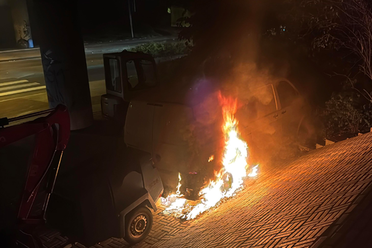 Bei Eintreffen des Einsatzführungsdienstes und der Polizei stand der hintere Bereich eines Kleintransporters bereits in Vollbrand.