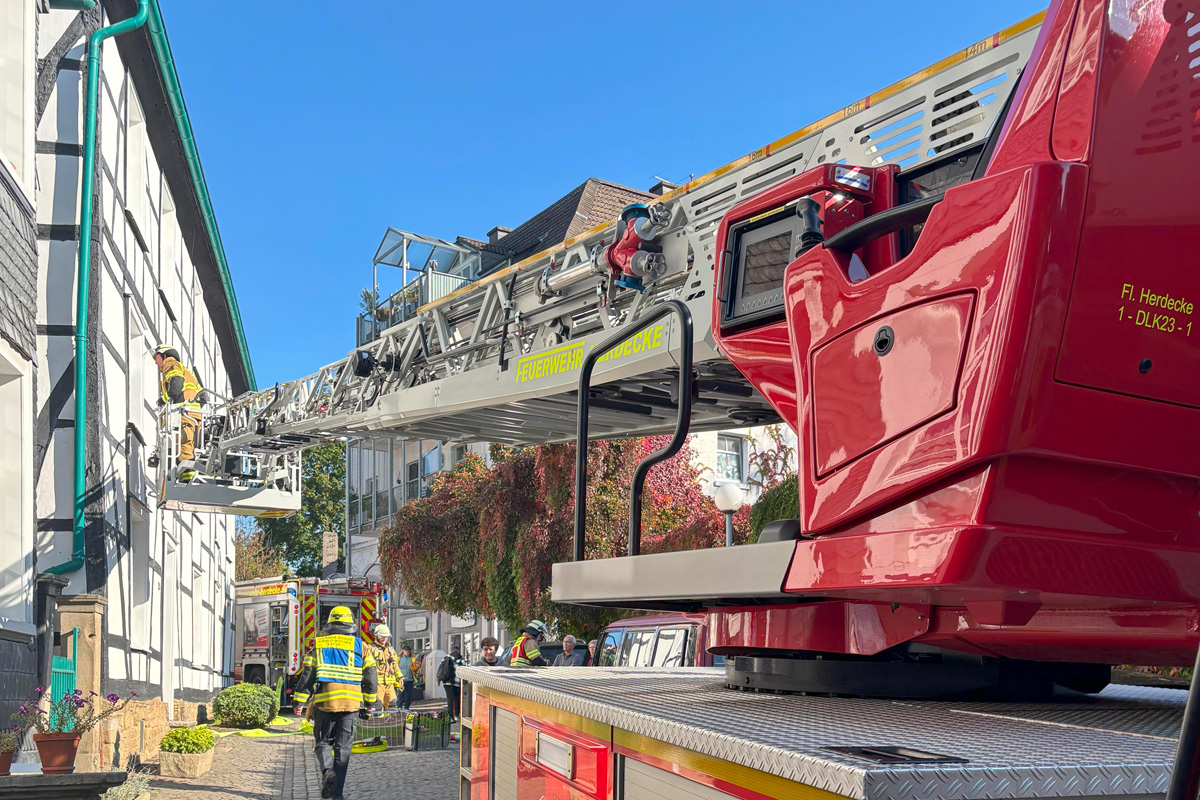 Am Donnerstagvormittag, den 02.10.2025, rückte die Freiw. Feuerwehr Herdecke am Morgen um 10:39 Uhr zu einem Wohnungsbrand in die Kampstraße aus. Es handelte sich um ein altes, historisches Fachwerkhaus.