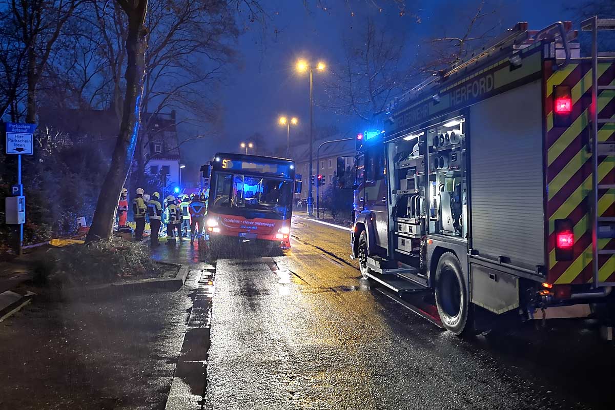 Am Donnerstagmorgen um 07:39 Uhr wurde die hauptamtliche Wache und der Rettungsdienst der Feuerwehr Herford zu einem Verkehrsunfall zwischen einem Linienbus und einer Fußgängerin alarmiert.