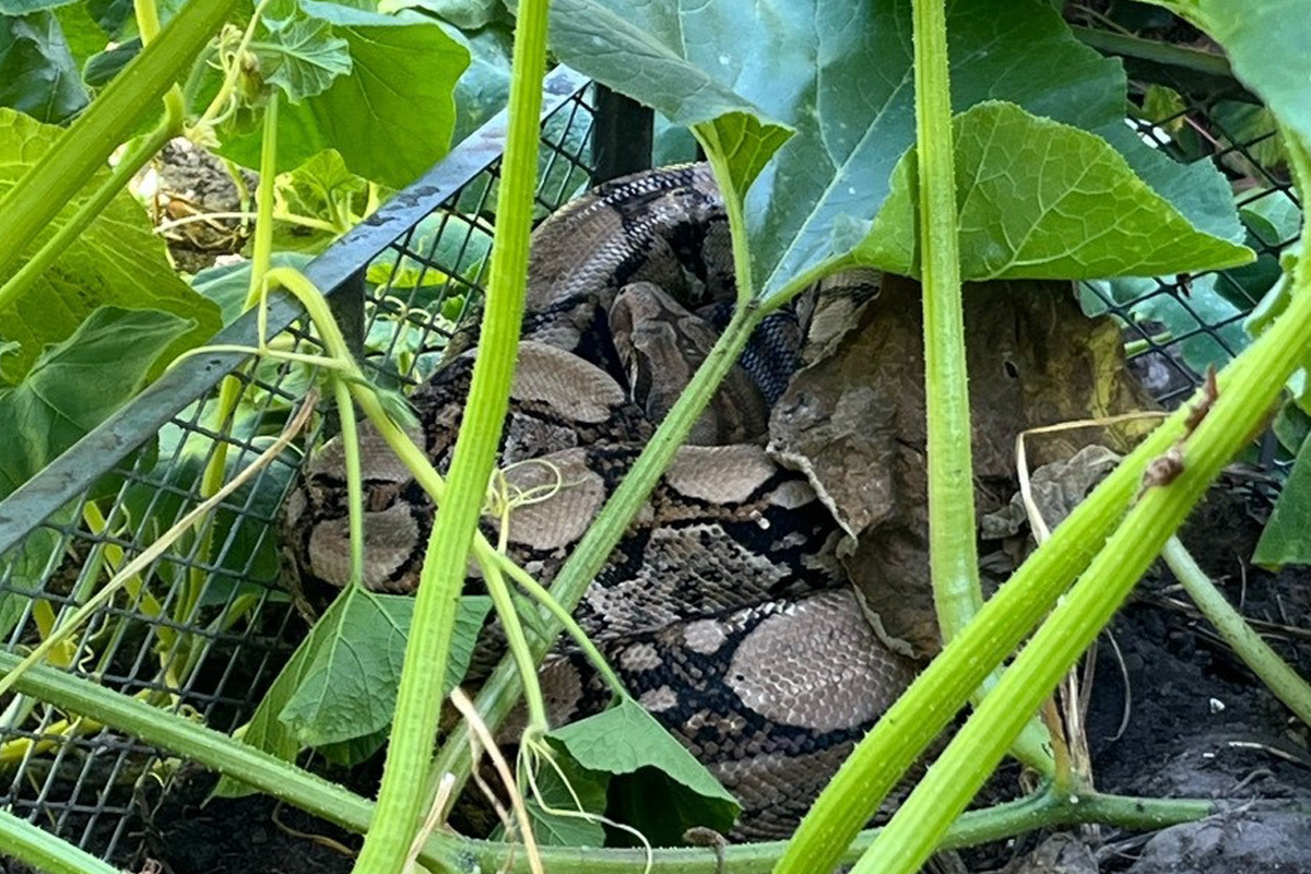 Eine 2,5 Meter lange Würgeschlange lag im Kompost. (Bildquelle: Kreispolizeibehörde Herford)