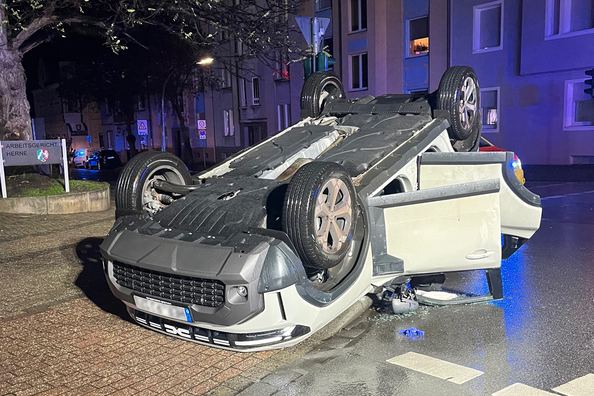 Nach einem Unfall in Herne überschlug sich ein Fahrzeug und blieb auf dem Dach liegen. Ein Mann wurde schwer verletzt.
