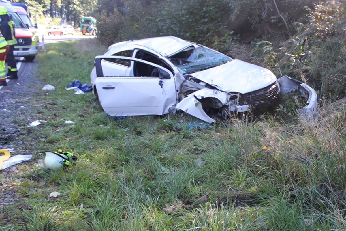 Im Bereich einer Linkskurve verlor sie die Kontrolle über das Fahrzeug. Der Astra kam nach rechts von der Fahrbahn ab, kollidierte mit einem Verkehrszeichen und überschlug sich nach derzeitigem Kenntnisstand mehrfach im angrenzenden Grünstreifen / Böschungsbereich.